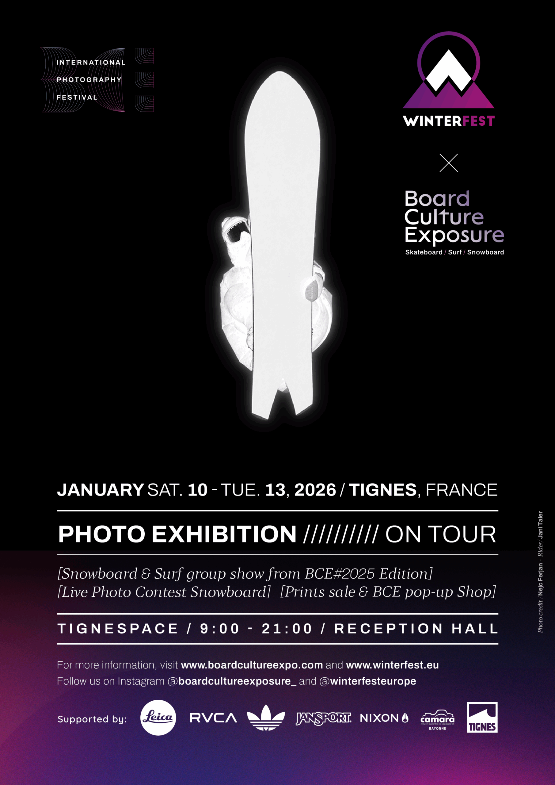 Board Culture Exposure is proud to announce its partnership with Winter Fest, which will be held in Tignes from January 10 to 13, 2026. For this second collaboration at high altitude, BCE will present two unique exhibitions. On the snow front, Beyond the Sandbank will showcase a series of 60 large-format photographs offering a dreamlike vision of surf culture, creating a striking contrast between ocean and mountain.